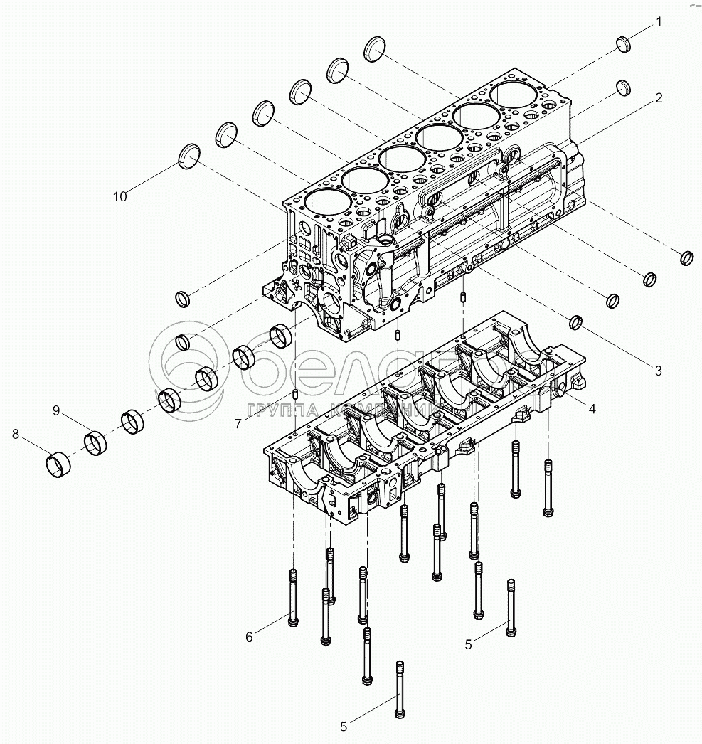 Каталог запасных частей к технике: Weichai 6M11 DHM16D0006. Cylinder Block Preassembly