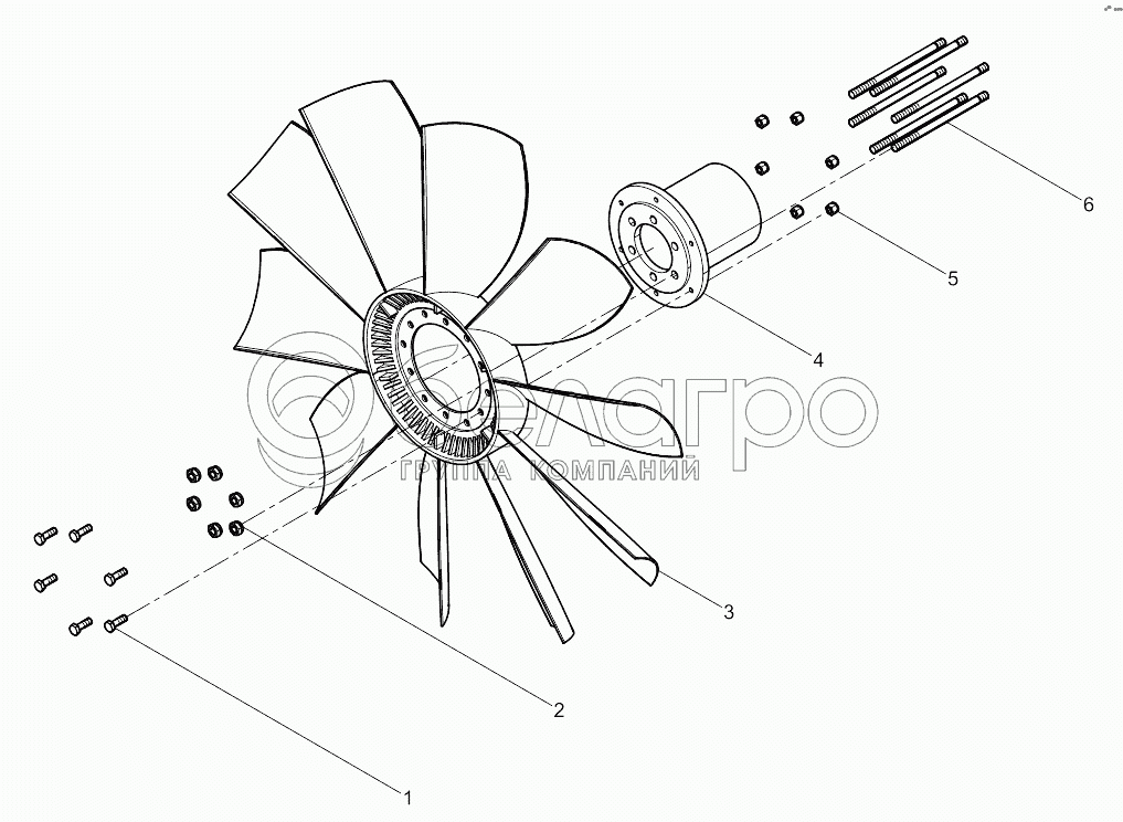 Каталог запасных частей к технике: Weichai 6M11 DHM16D0006. Fan and Hub Group