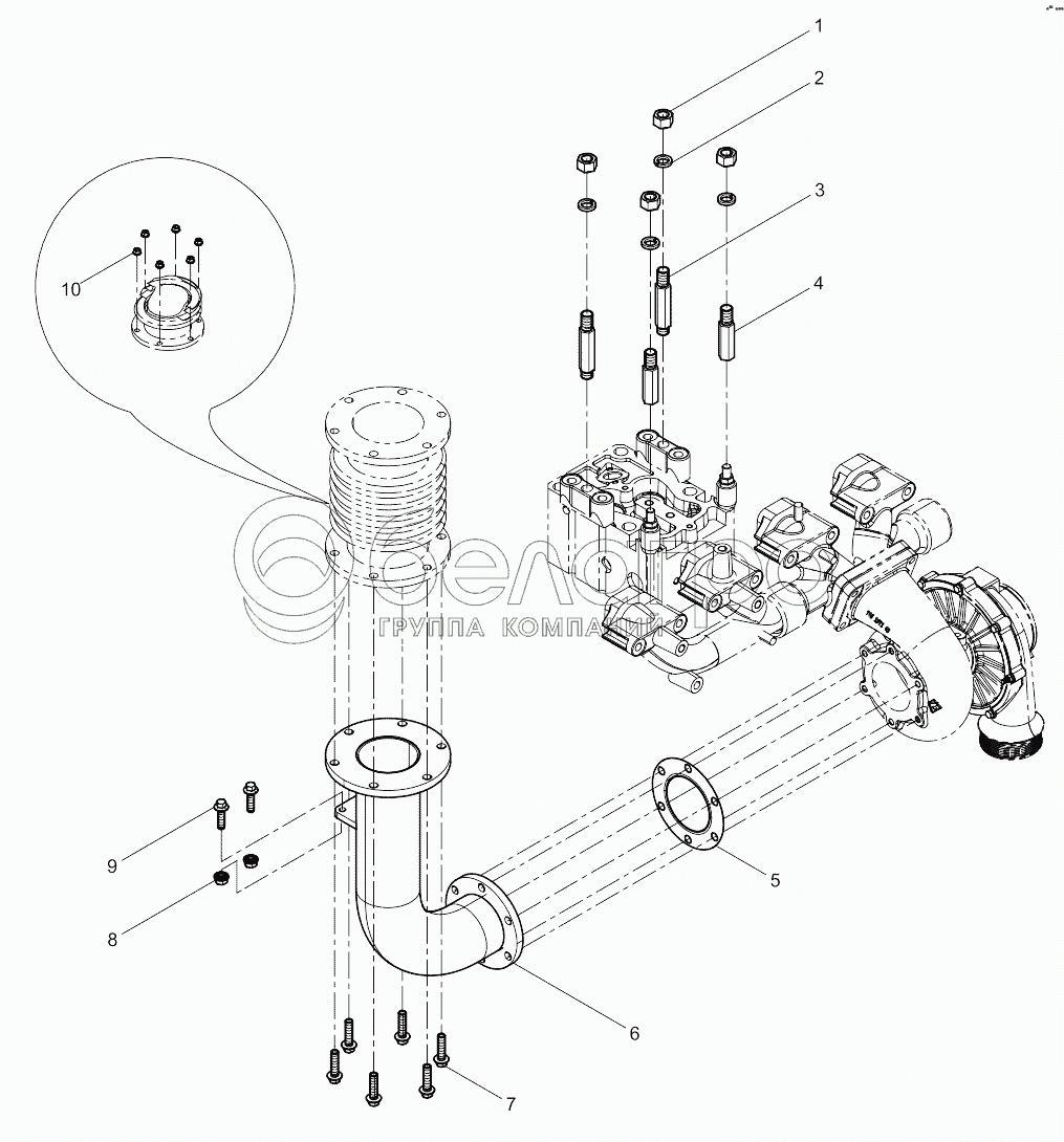 Каталог запасных частей к технике: Weichai 6M11 DHM16D0006. Rear Exhaust Manifold Group