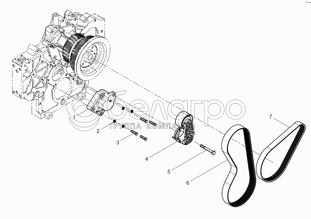 Каталог запасных частей к технике: Weichai 6M11 DHM16D0006. Tensioner And Belt Group
