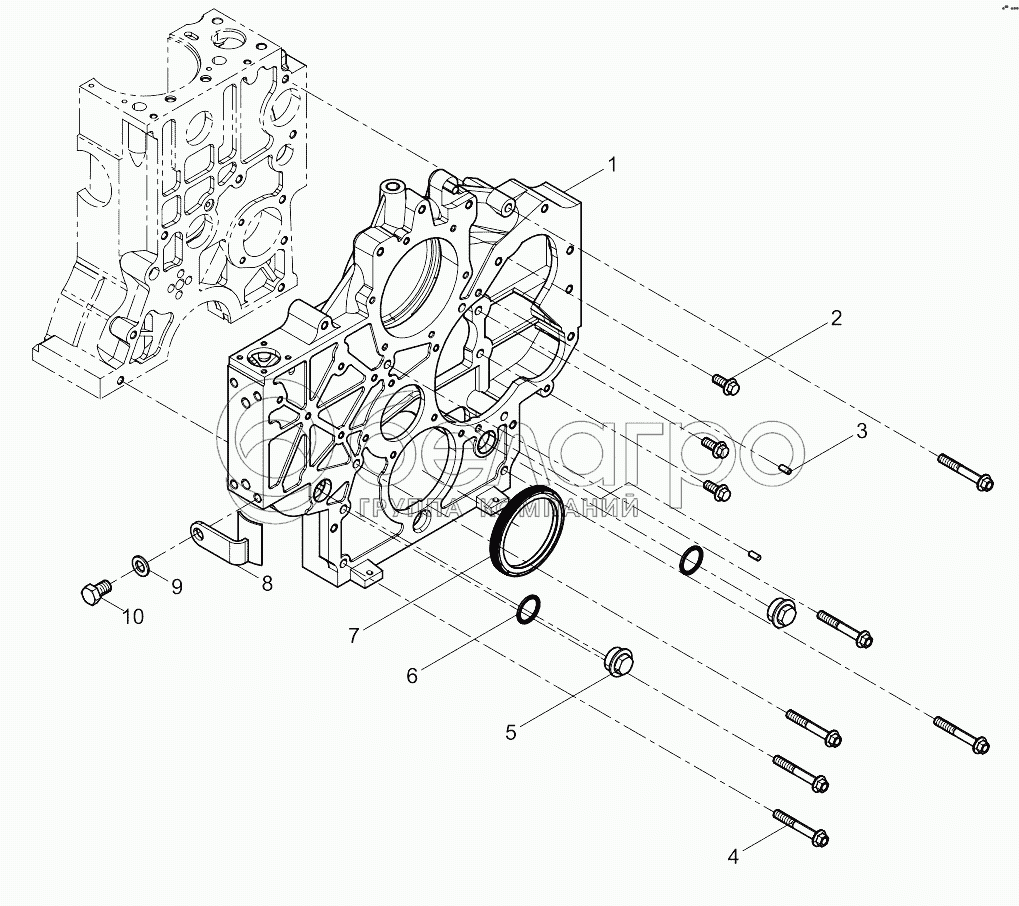 Каталог запасных частей к технике: Weichai 6M11 DHM16D0006. Timing Gear Housing Group