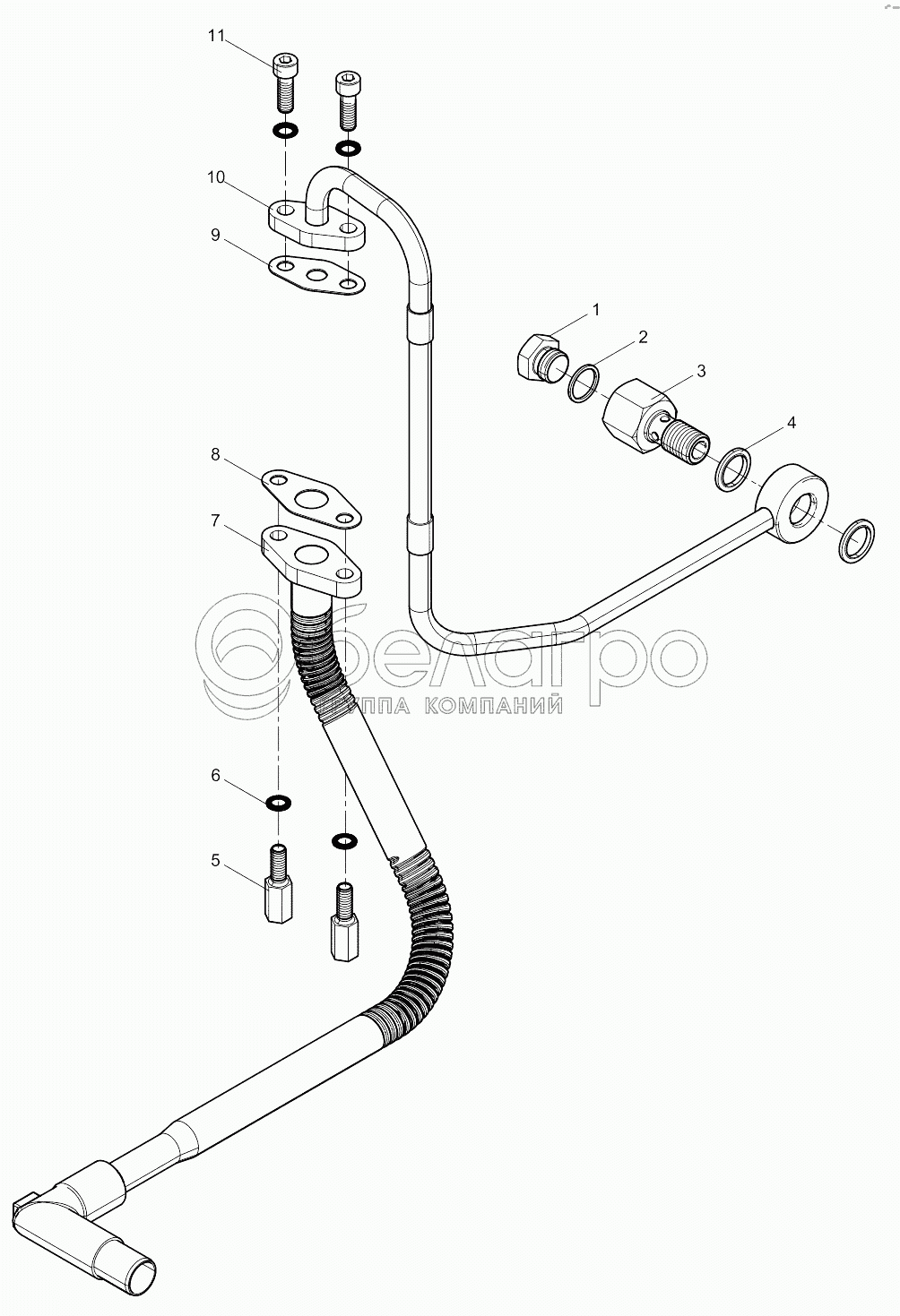 Каталог запасных частей к технике: Weichai 6M11 DHM16D0006. Turbocharger Oil Pipe Group