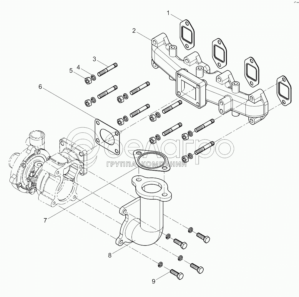 Каталог запасных частей к технике: Weichai BAUDOUIN 4M06G33. Exhaust Manifold Group