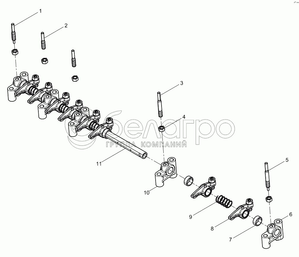 Каталог запасных частей к технике: Weichai BAUDOUIN 4M06G33. Integrated Rocker Arm Shaft Assembly