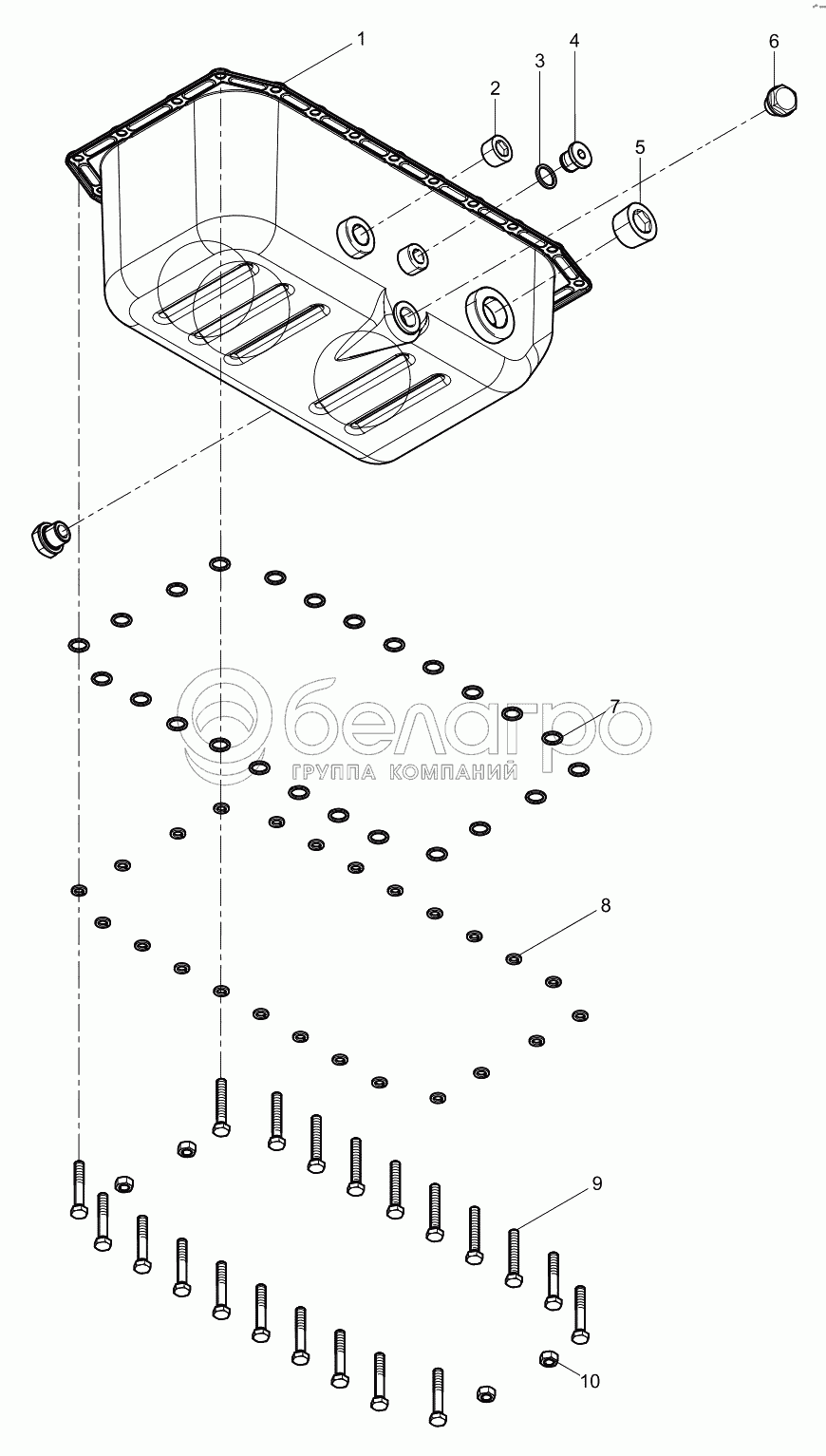 Каталог запасных частей к технике: Weichai BAUDOUIN 4M06G33. Oil Pan Group