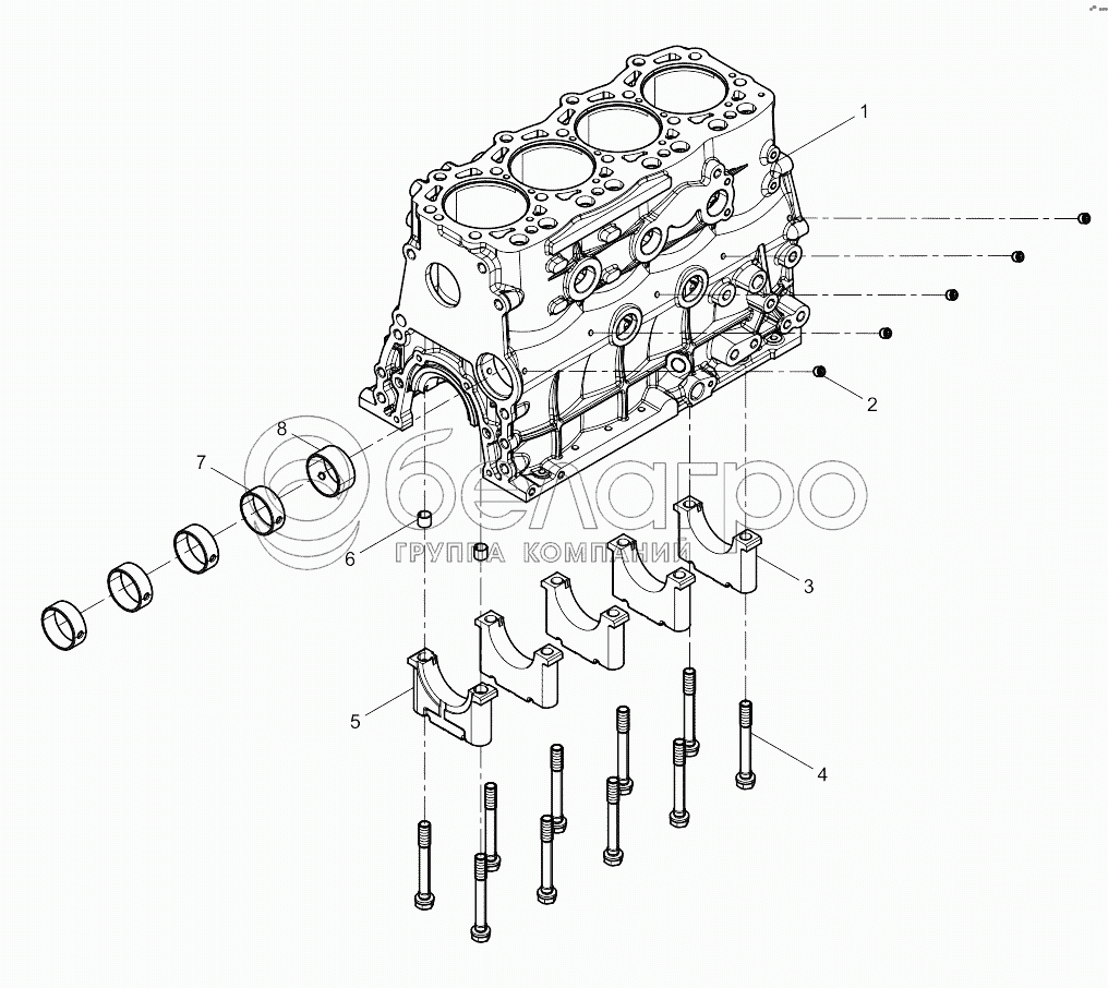 Каталог запасных частей к технике: Weichai BAUDOUIN 4M06G44. Crankcase pre-assembly