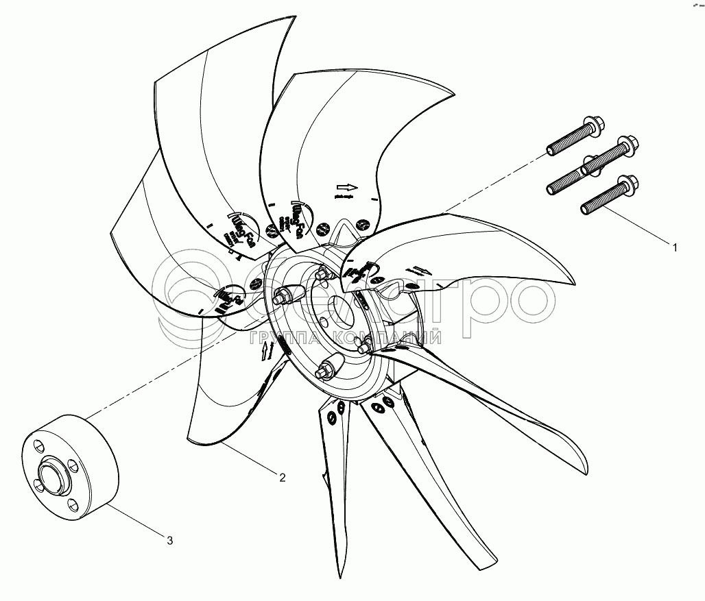 Каталог запасных частей к технике: Weichai BAUDOUIN 4M06G44. Fan and Hub Group