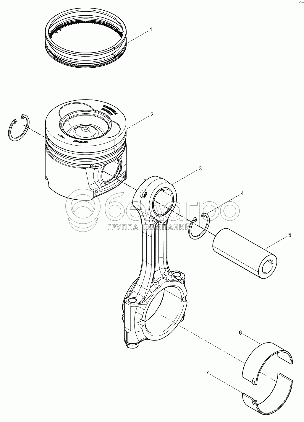 Каталог запасных частей к технике: Weichai BAUDOUIN 4M06G44. Piston and Connecting Rod Group