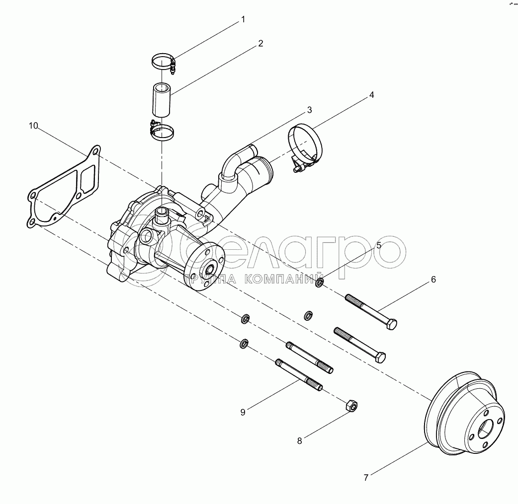 Каталог запасных частей к технике: Weichai BAUDOUIN 4M06G44. Water Pump Group