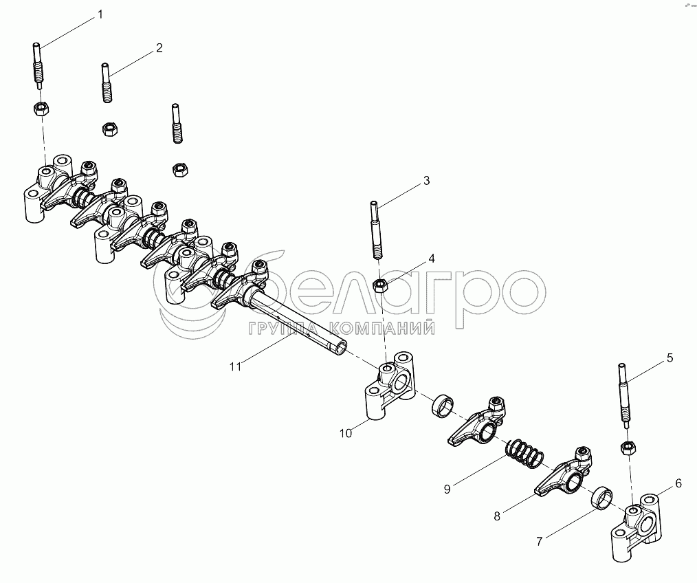 Каталог запасных частей к технике: Weichai BAUDOUIN 4M06G50. Integrated Rocker Arm Shaft Assembly