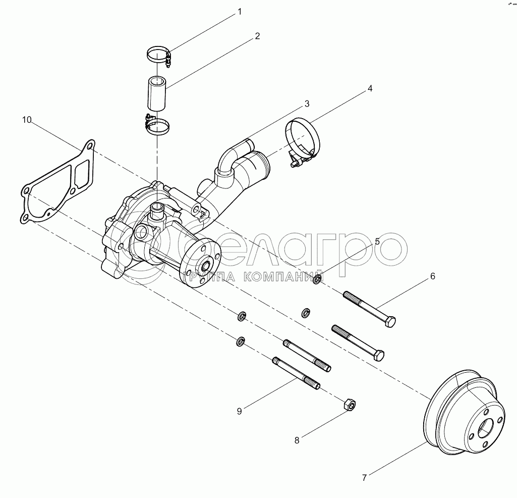 Каталог запасных частей к технике: Weichai BAUDOUIN 4M06G50. Water Pump Group