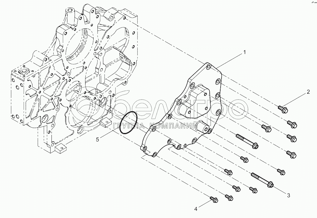 Каталог запасных частей к технике: Weichai WD10 DHD10C0009. Camshaft gear cover combination