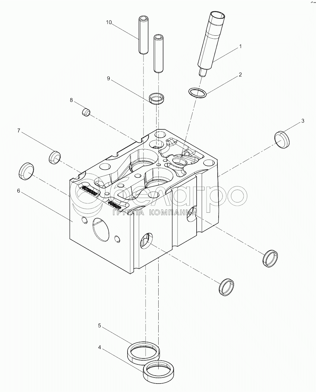 Каталог запасных частей к технике: Weichai WD10 DHD10C0009. Cylinder head subassembly