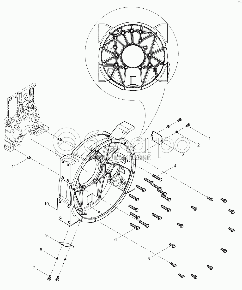 Каталог запасных частей к технике: Weichai WD10 DHD10C0009. Flywheel Housing Group