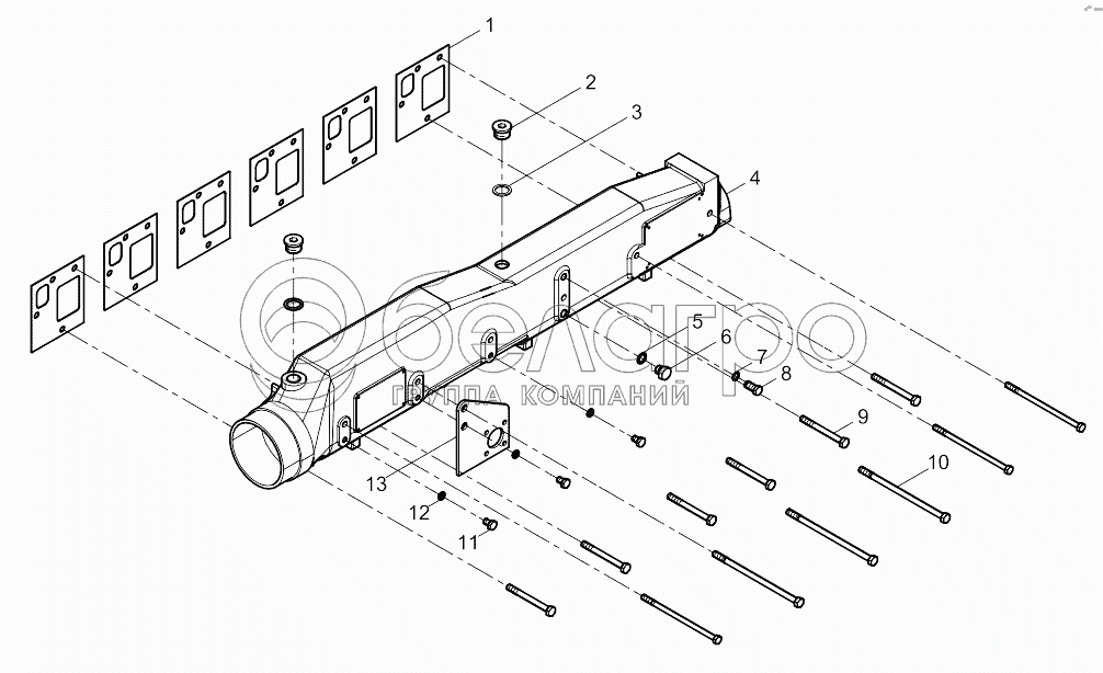Каталог запасных частей к технике: Weichai WD10 DHD10C0009. Intake Manifold Group