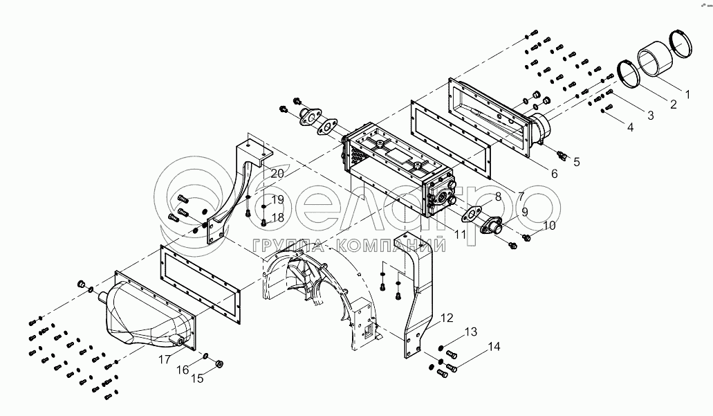 Каталог запасных частей к технике: Weichai WD10 DHD10C0009. Intercooler assembly