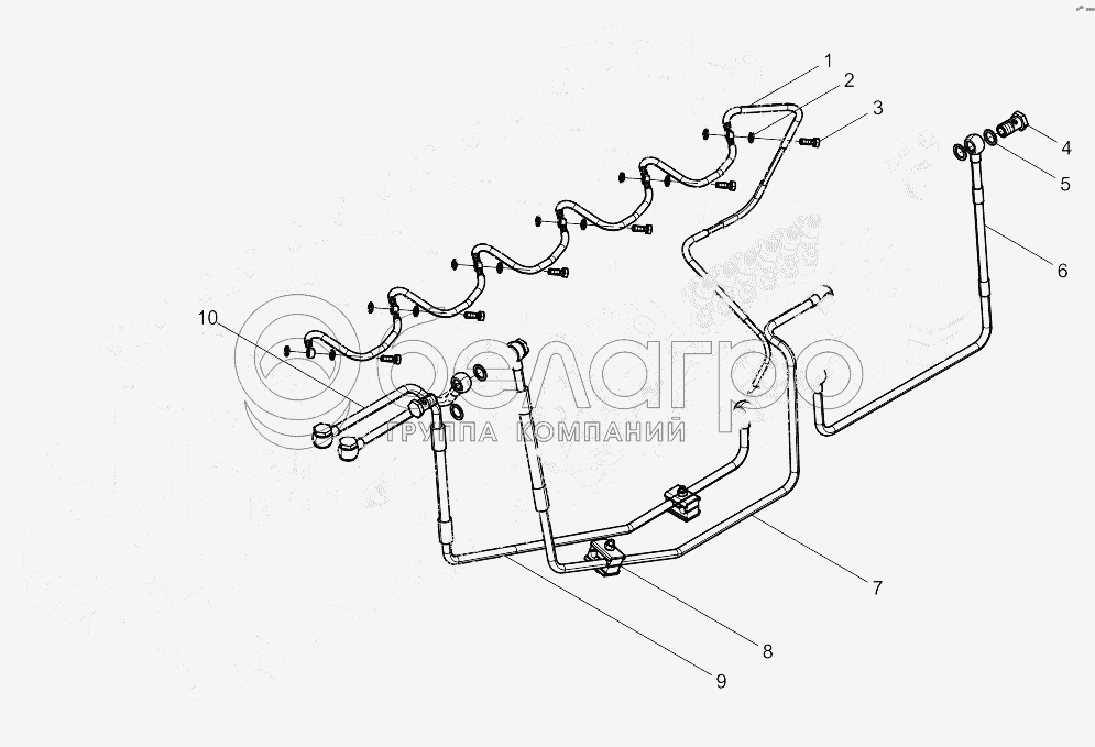 Каталог запасных частей к технике: Weichai WD10 DHD10C0009. Low Pressure Oil pipe Group