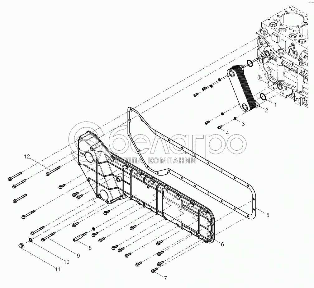 Каталог запасных частей к технике: Weichai WD10 DHD10C0009. Oil cooler assembly