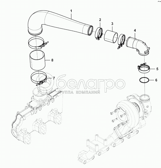 Каталог запасных частей к технике: Weichai WD10 G220E23. Compressor pipe group