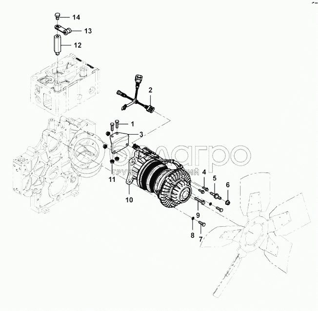 Каталог запасных частей к технике: Weichai WD10 G220E23. Fan bracket group