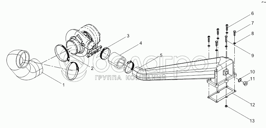 Каталог запасных частей к технике: Weichai WD10G178E25 (Евро 2). Compressor Pipeline Group