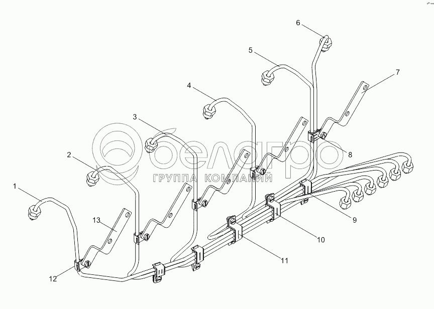 Каталог запасных частей к технике: Weichai WD10G178E25 (Евро 2). High pressure pipe assembly
