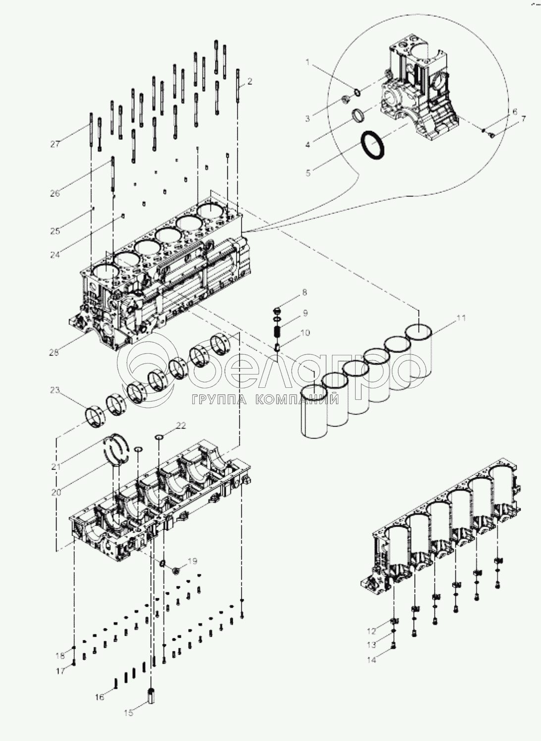 Каталог запасных частей к технике: Weichai WD10G220E21. Engine block group