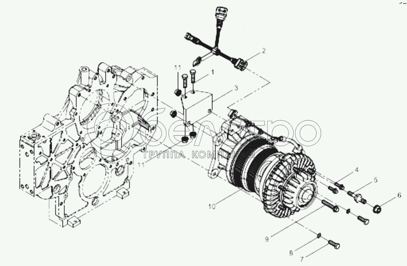 Каталог запасных частей к технике: Weichai WD10G220E21. Fan bracket group