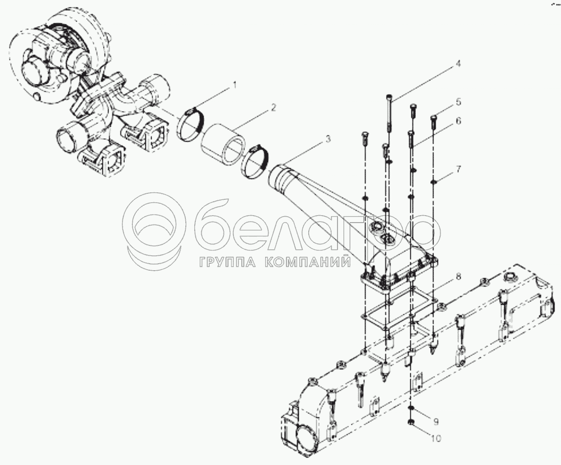 Каталог запасных частей к технике: Weichai WD10G220E21. Inlet pipe group