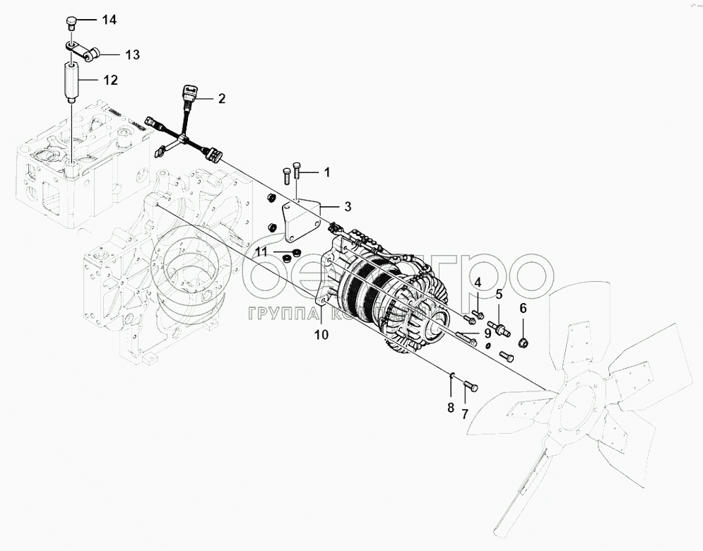 Каталог запасных частей к технике: Weichai WD10G220E21. Fan bracket group