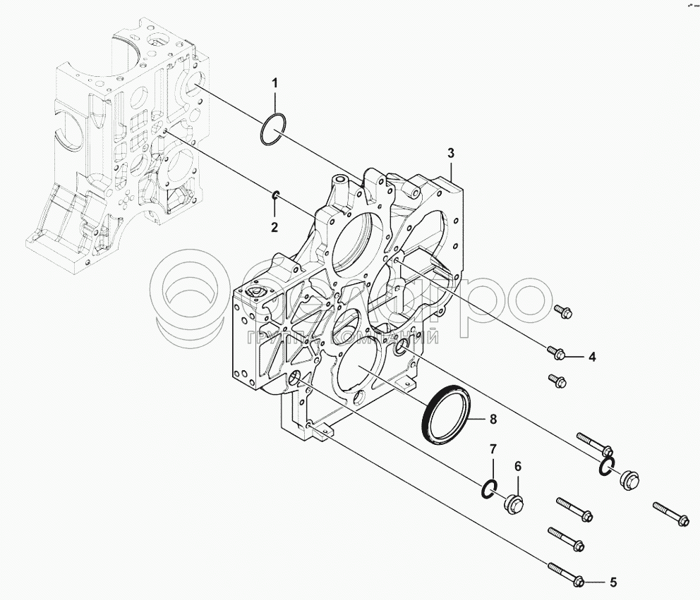 Каталог запасных частей к технике: Weichai WD10G220E21. Timing gear housing group