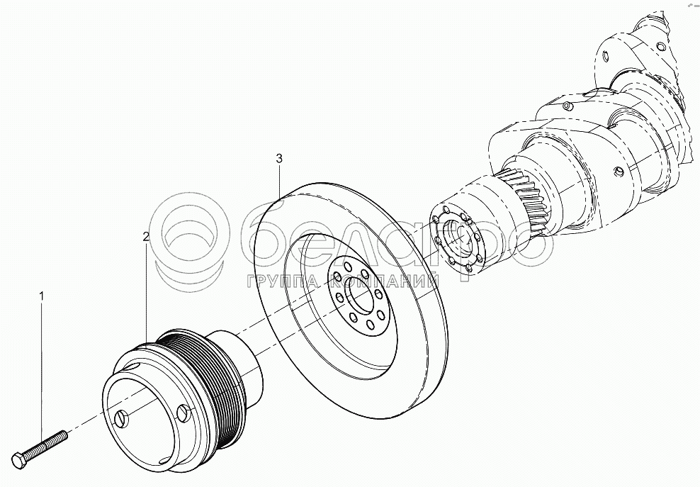 Каталог запасных частей к технике: Weichai WD10G220E22. Crankshaft Pulley Group