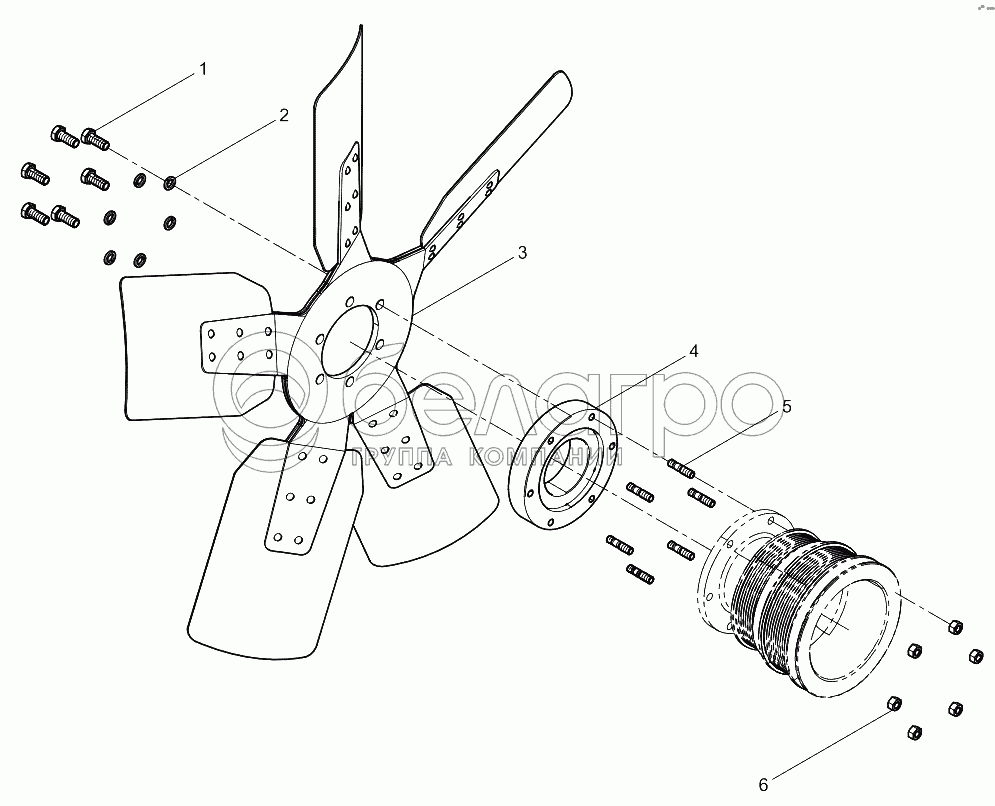 Каталог запасных частей к технике: Weichai WD10G220E22. Fan and Hub Group