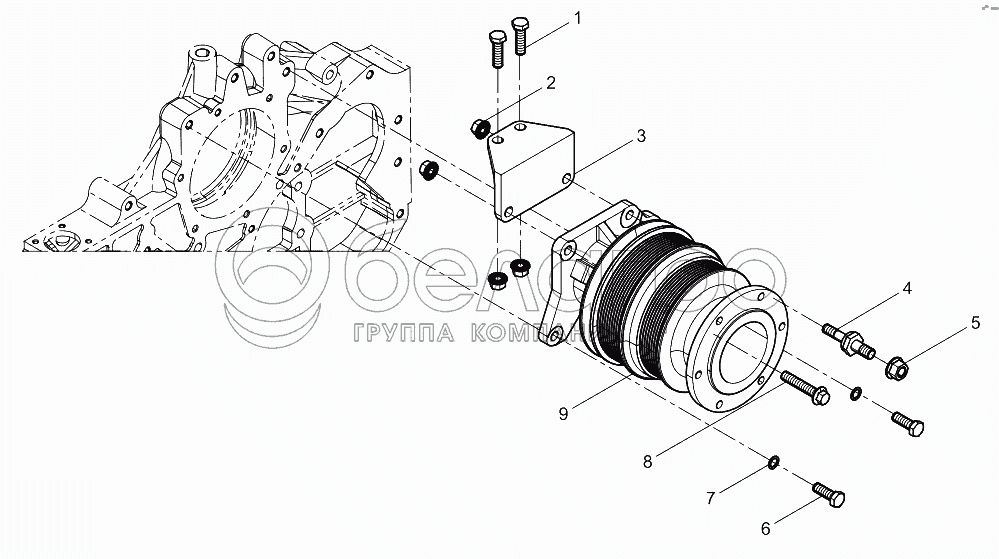 Каталог запасных частей к технике: Weichai WD10G220E22. Fan Bracket Group