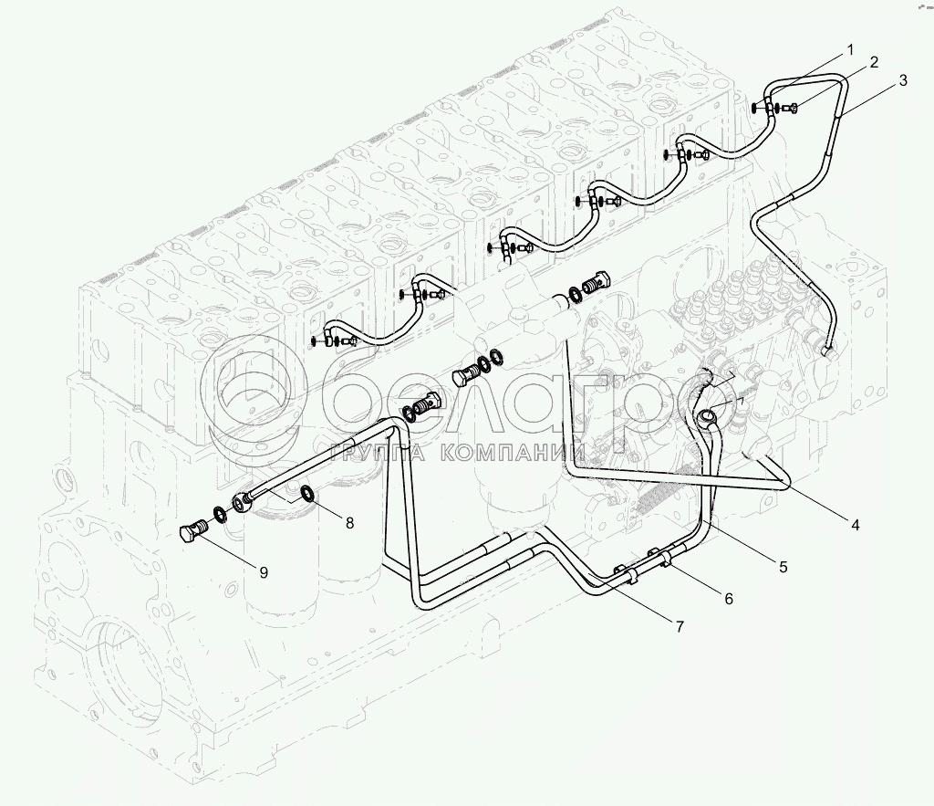 Каталог запасных частей к технике: Weichai WD10G220E22. Low Pressure Oil pipe Group