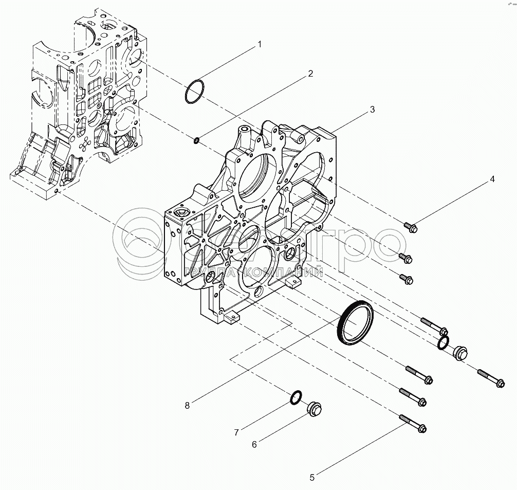 Каталог запасных частей к технике: Weichai WD10G220E22. Timing Gear Housing Group