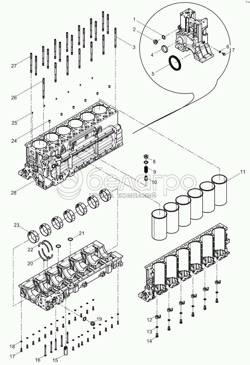 Каталог запасных частей к технике: Weichai WD10G220E23 (Евро 2). Engine Block Group