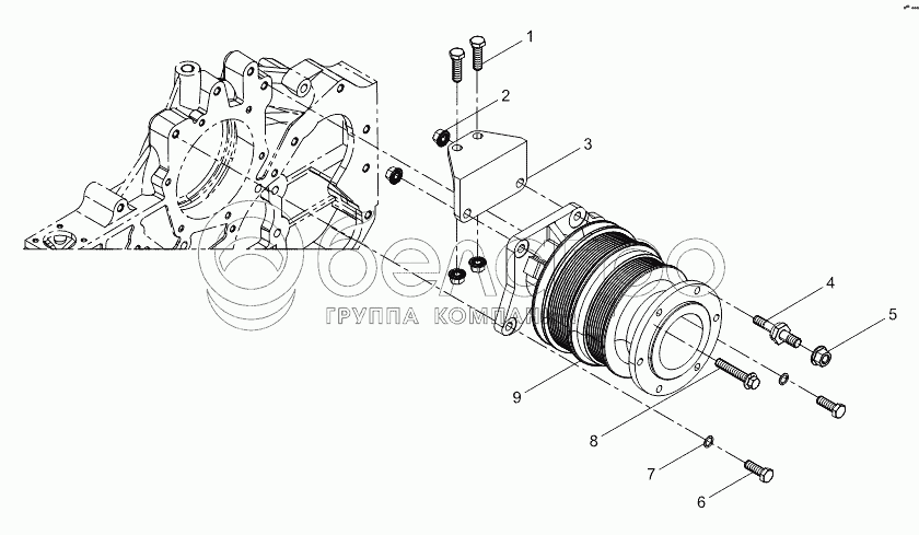 Каталог запасных частей к технике: Weichai WD10G220E23 (Евро 2). Fan Bracket Group