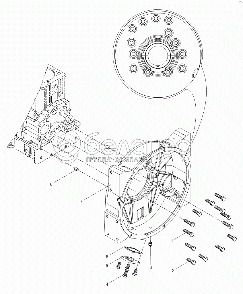 Каталог запасных частей к технике: Weichai WD10G220E23 (Евро 2). Flywheel Housing Group
