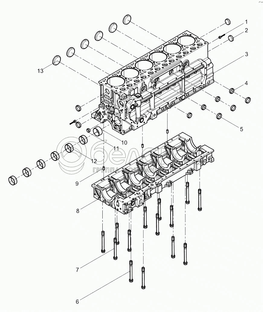 Каталог запасных частей к технике: Weichai WD10G220E23 (Евро 2). Pre-assembled cylinder block