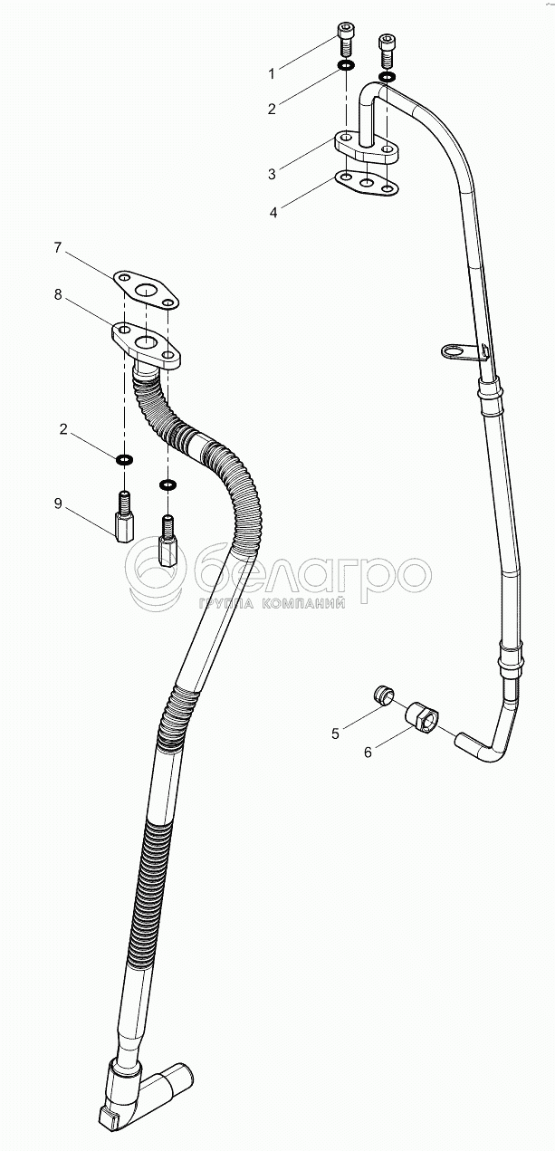 Каталог запасных частей к технике: Weichai WD10G220E23 (Евро 2). Turbocharger Oil pipe Group