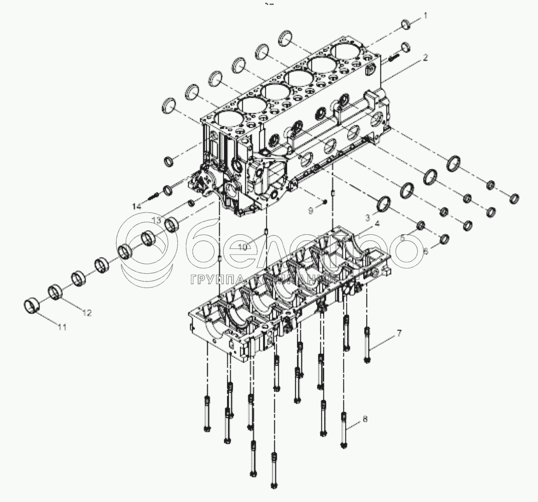 Каталог запасных частей к технике: Weichai WD12.420. 612600014234 Pre-assembled cylinder block