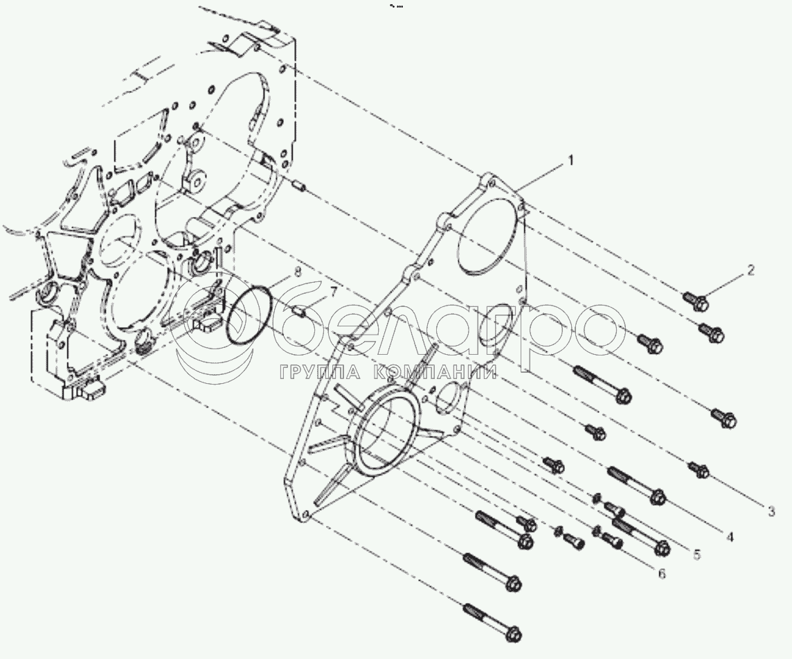 Каталог запасных частей к технике: Weichai WD12.420. Cylinder block front cover group