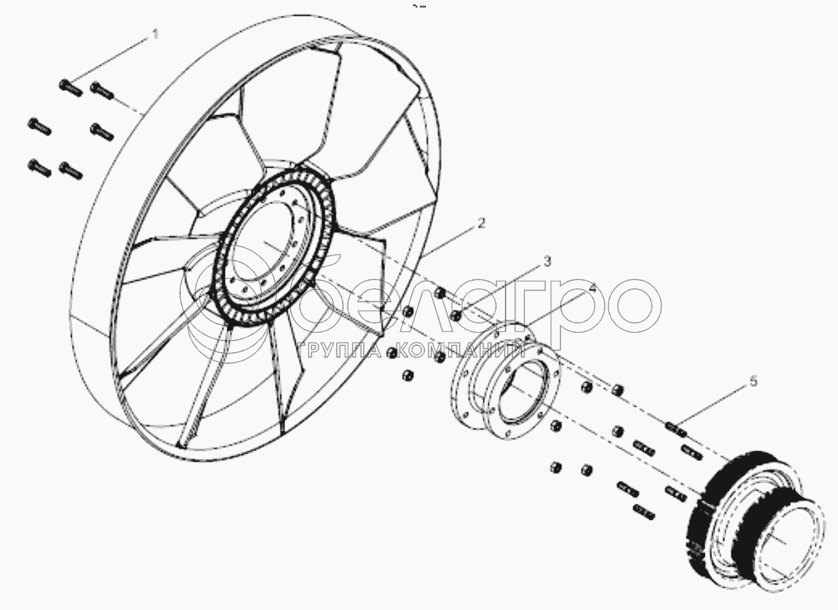 Каталог запасных частей к технике: Weichai WD12.420. Fan and hub group