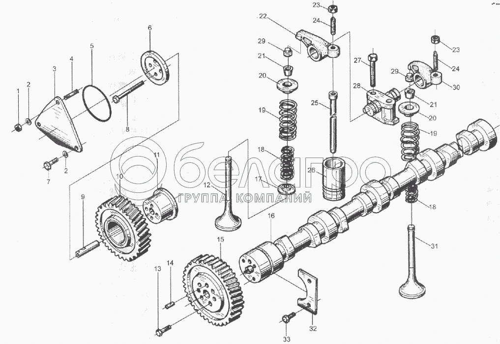 Каталог запасных частей к технике: Weichai WD615 (Евро 2). Распределительный вал, клапана