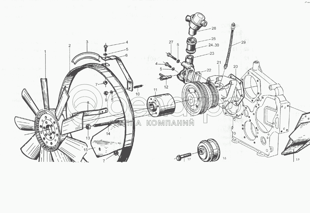 Каталог запасных частей к технике: Weichai WD615 (Евро 2). Водяной насос, вентилятор