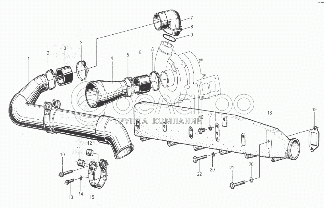 Каталог запасных частей к технике: Weichai WD615 (Евро 2). Воздухопровод компрессора
