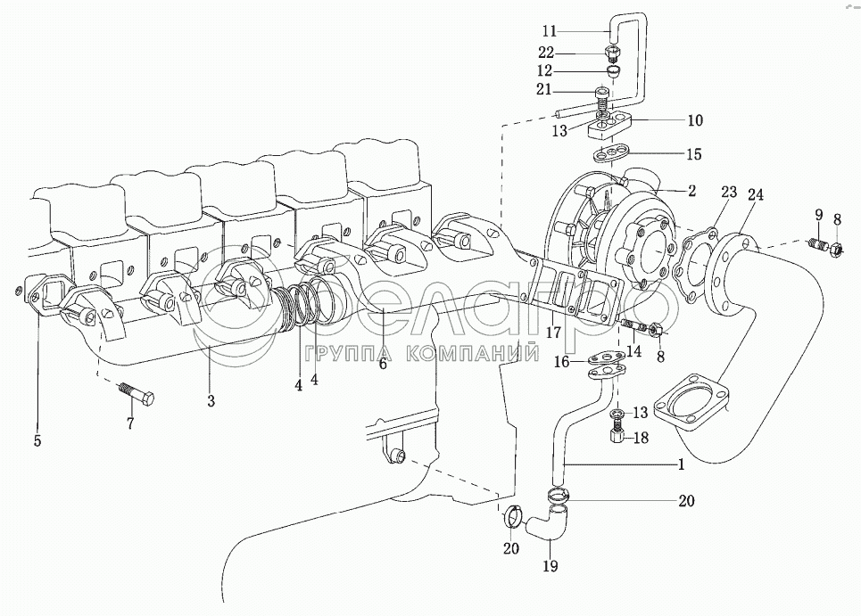 Каталог запасных частей к технике: Weichai WD615 (Евро 3). Впускная и выхлопная трубы