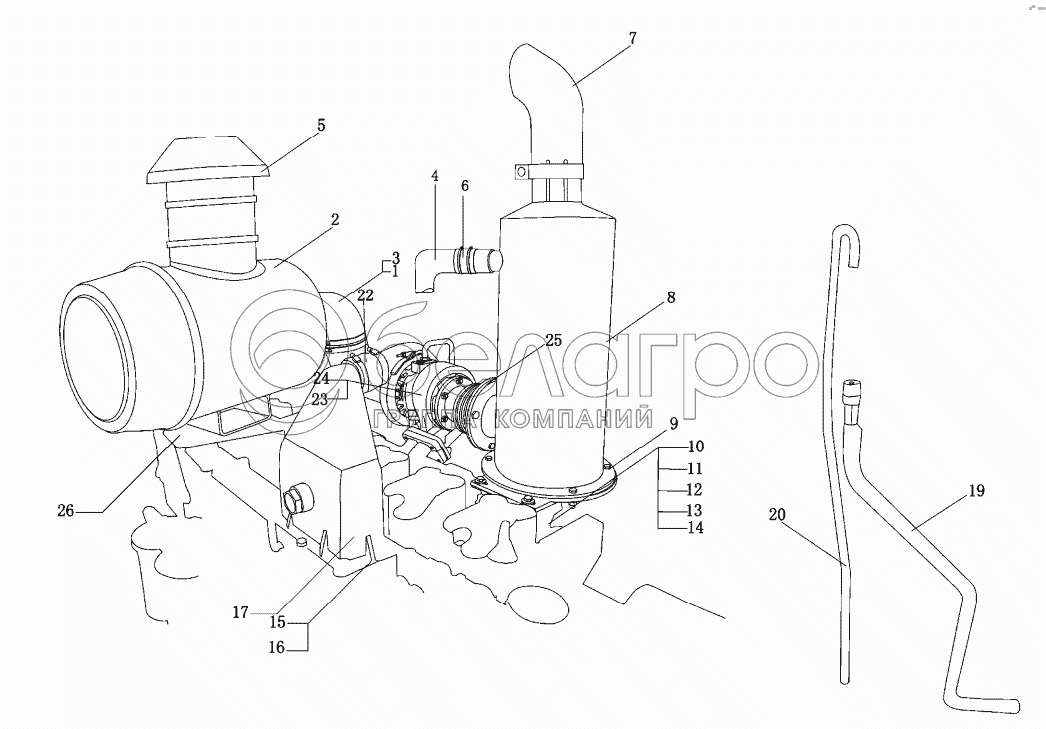 Каталог запасных частей к технике: Weichai WD615 (Евро 3). Впускная и выхлопные трубы
