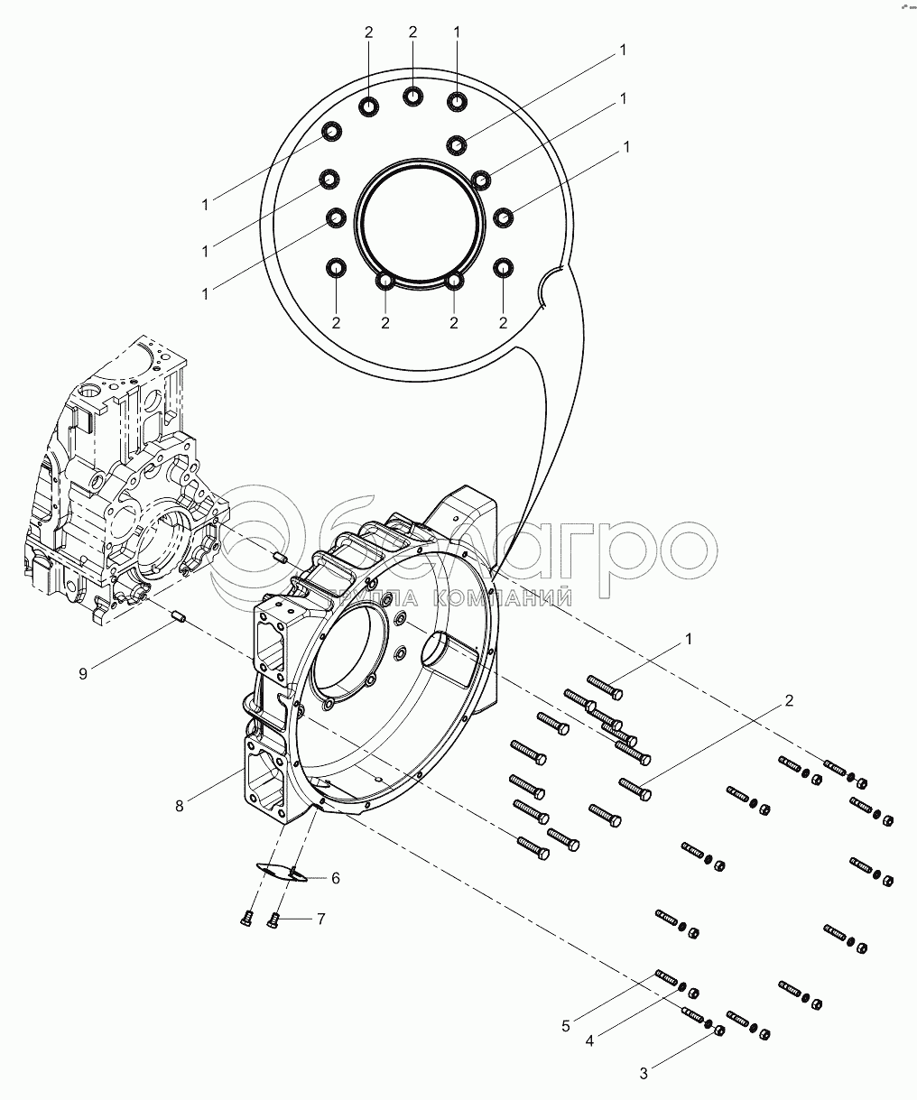 Каталог запасных частей к технике: Weichai WP10336E40 (Евро 4). Flywheel Housing Group